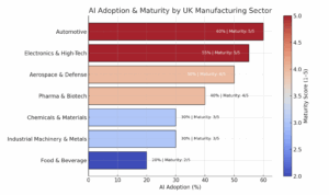 Table: AI adoption, maturity, and investment by sector (mid-to-large UK manufacturers)